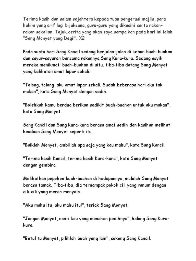 Pertandingan Bercerita Bahasa Melayu Peringkat Daerah Kuala Langat Peringkat Negeri Selangor Sk Bukit Changgang from skbukitchanggang.edu.my Pertandingan bercerita bahasa melayu tahap 1 peringkat negeri pahang 2016. B ercerita ndingan s i perta 1 dan 2do kumenta yu bagi tahap la t an bagi ba hasa me rah kinta sela pering kat dae 2012. Pertandingan bercerita tahap 1 tahun 2020. Skrip bercerita tahap 2 peserta: Johan pertandingan bercerita bm tahap 1 peringkat negeri selangor 2011 pada 27 jun 2011 bertempat di sk kuala selangor. Koleksi teks bercerita mtq pendidik2u. Naib johan bercerita spontan tahap 1 peringkat putrajaya. 0 ratings0% found this document useful (0 votes).