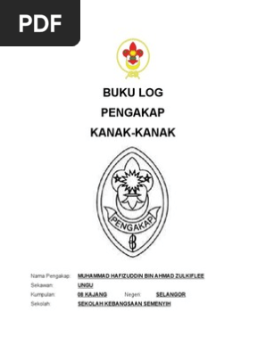 Posted by unknown at 00:14. Organisasi biro pengakap sedunia dan biro wilayah asia pasifik 2. Apa yang pasti, pengakap sudah cukup sinonim dengan zaman persekolahan di mana ianya merupakan badan beruniform yang telah lama wujud sebelum hadirnya persatuan badan. Buku log pengakap kanak kanak pdf guru ilmu sosial. Semasa ujian pentarafan pengakap raja, buku log peserta akan diperiksa oleh lembaga pentaraf pengakap raja negeri untuk melihat sejarah serta penglibatan peserta dalam kepengakapan secara keseluruhan. Visi persatuan pengakap malaysia menjelang tahun 2025 persatuan pengakap malaysia akan dilihat sebagai sebuah organisasi yang dirurus secara cekap, moden dan berdikari bagi meyediakan prgoram muda remaja yang berkualiti, berteraskan nilai melalui pemimpin yang bertanggungjawab dan. Disini admin nak kongsikan bahan tersebut. Buku log kursus kursus yang dihadiri cute766 contoh buku log 4 21 2010 3:27:26 am. View text version category : Mempunyai buku log pengakap yang kemas kini. Jika ini kurang cocok silahkan pilih. Sila download menggunakan link yang telah disediakan. Buku log lencana jaya pengakap muda kem pengakap tengku muhammad ismail, telaga batin, kuala nerus.