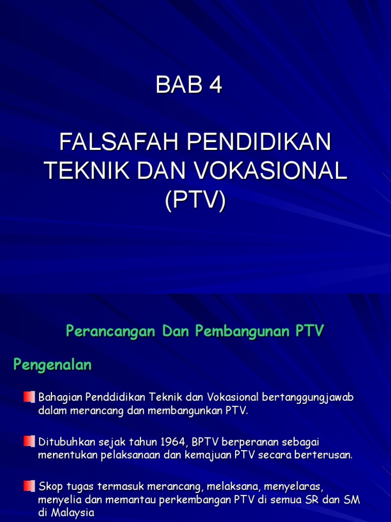 Pendidikan teknik dan vokasional (ptv) di malaysia.